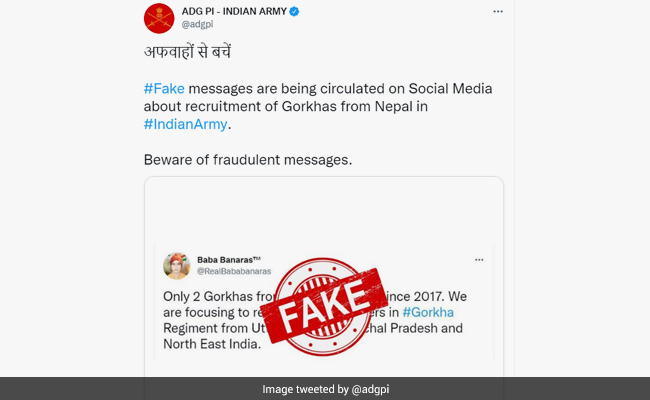 भारतीय सेना ने यह जानकारी एक ट्वीट पर चल रहे गलत खबर को जवाब देते हुए दिया. बाबा बनारस नाम के एक ट्विटर यूजर ने ट्वीट करते हुए लिखा था कि 2017 में केवल 2 ही गोरखा सेना में भर्ती हुए थे, इसलिए गोरखा रेजिमेंट उत्तराखंड , उत्तर प्रदेश, और उत्तर पूर्व भारत से उम्मीदवारों की अधिक भर्ती करने पर ध्यान से रहे हैं.