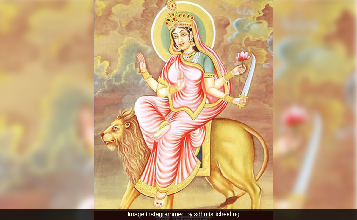 मां कात्यायनी का स्वरूप दिव्य और भव्य माना जाता है. मां का शुभ वर्ण है और स्वर्ण आभा से मण्डित है. मां की चार भुजाए हैं जिनमें से दाहिने तरफ का ऊपरवाला हाथ अभय मुद्रा में और नीचे वाला हाथ वर मुद्रा में स्थित है. मां का बायां ऊपर वाला हाथ तलवार पकड़े नजर आता है तो निचले हाथ में कमल दिखता है. मां का वाहन सिंह कहा जाता है.