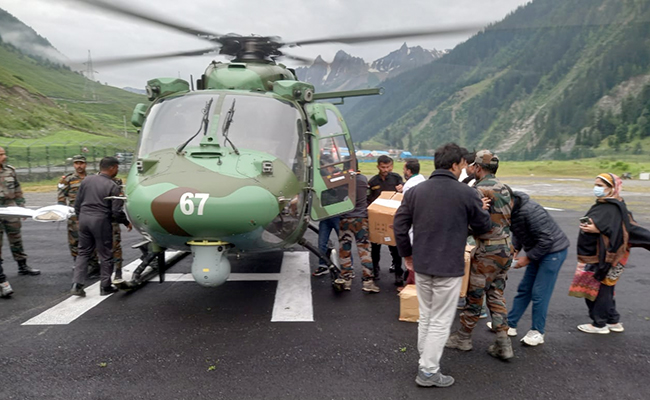 - अमरनाथ में भारतीय वायुसेना भी बचाव और राहत कार्य में योगदान दे रही है. भारतीय वायु सेना के 4 एमआई-17वी5 और 4 चीतल हेलीकॉप्टरों को आज अमरनाथ में बचाव और राहत प्रयासों के लिए तैनात किया गया. चीतल हेलीकॉप्टरों ने 45 उड़ानें भरीं. इस दौरान एनडीआरएफ और सेना के जवानों को लेकर जाने के साथ ही 3.5 टन राहत सामग्री भी ले जाई गई. साथ ही 45 लोगों को निकाला गया. वहीं एमआई-17वी5 हेलीकॉप्टरों ने 20 उड़ानें भरीं और 9.5 टन राहत सामग्री पहुंचाई. साथ ही और 64 लोगों को सुरक्षित निकाला गया. साथ ही 7 शवों को भी हेलीकॉप्टर के जरिये लाया गया.