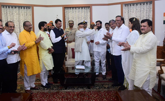 - इसके बाद एकनाथ शिंदे देवेंद्र फडणवीस के साथ राज्यपा से मिलने पहुंचे. जहां उन्होंने सरकार बनाने का दावा किया. साथ ही अपना समर्थन पत्र भी सौंपा.