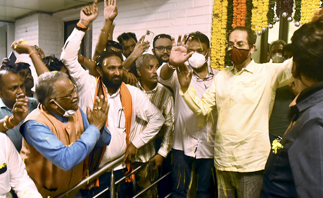 - जिला प्रमुखों को संबोधित करते हुए मुख्यमंत्री उद्धव ठाकरे ने शिवसेना और ठाकरे का नाम लिए बिना कहा, "आप पेड़ के फूल फल और टहनी ले जा सकते हैं लेकिन जड़े नहीं तोड़ सकते.”आप कितनी दूर जा सकते हैं. इस बात से उन्होंने पार्टी से अलग हो रहे विधायकों को सख्त संदेश दिया.साथ ही बता दिया कि आप शिवसेना से अलग हो रहे हैं शिवसेना को आपके जाने से नुकसान नहीं होगा.