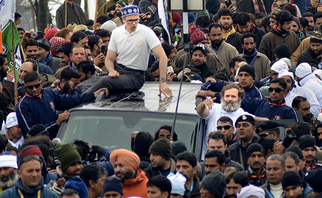 नेशनल कांफ्रेंस के नेता उमर अब्दुल्ला भी भारत जोड़ो यात्रा में राहुल गांधी के साथ नजर आए