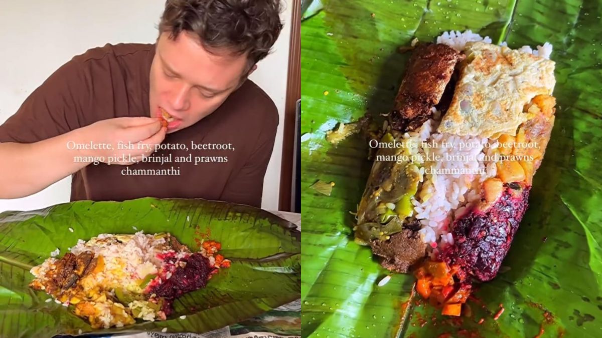 भारत के लोकल फूड सिर्फ भारतीय लोगों को ही नहीं विदेशियो को भी खूब पसंद हैं. ऐसे वीडियो अक्सर सोशल मीडिया पर वायरल होते रहते हैं. फेमस स्ट्रीट फूड से लेकर आम व्यंजनों तक, इन पोस्टों में कई प्रकार के व्यंजन पेश किए जाते हैं, जिन्हें भारतीय न केवल खाना पसंद करते हैं, बल्कि खाना पकाने में गर्व भी महसूस करते हैं. कुछ समय पहले, एक ब्रिटिश व्लॉगर को एक स्पेशल केरालाइट डिश की खोज करते हुए दिखाने वाली एक रील ने ऑनलाइन सबका ध्यान खींचा था. @Risholflavor द्वारा साझा किए गए वीडियो में एक ब्रिटिश व्यक्ति को एक बड़े मुड़े हुए केले के पत्ते को खोलते हुए दिखाया गया है. खाने के पार्सल को पहले अखबार में लपेटा गया. वीडियो में लिखा है, "केरल के एक छोटे से शहर में लंच में घर का बना पोथिचोरू खा रहे हैं."