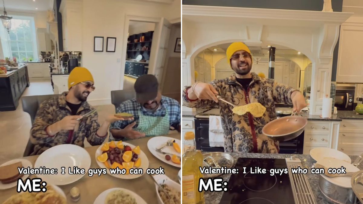 दिलजीत दोसांझ एक सच्चे इंटरटेनर हैं, जो अपने गानों से हमेशा ही अपने फैंस का दिल जीत लेते हैं. ऑफ-स्क्रीन, उनका बिहेवियर, पर्सनैलिटी और मजाकिया कमेंट उन्हें सबसे पसंदीदा सितारों में से एक बनाती हैं. उनके सोशल मीडिया पर नजर डालें तो वहां देख कर साफ पता लग जाता है कि वो खाना खाने और पकाने के शौकीन हैं, जो समय के साथ और बेहतर होता जा रहा है. हाल ही में, टीम दिलजीत ने इंस्टाग्राम पर एक वीडियो शेयर किया जिसमें सिंगर नाश्ता बनाते हुए दिखाई दे रहे हैं. वीडियो के टेक्स्ट में लिखा है, "वेलेंटाइन: मुझे वे लोग पसंद हैं जो खाना बना सकते हैं. मैं:" वीडियो की शुरुआत दिलजीत के गाना गाते हुए होती है, जब वो एक पैन में ऑमलेट बनाते हैं. इसके बाद, वो एक एवोकैडो डिप बनाते हैं और इसे टोस्ट पर फैलाते हैं. मेज पर, हम बेसन के चीले, ऑमलेट, संतरे और ब्लैकबेरी जैसे फल, ब्राउन ब्रेड और उपमा जैसी चीज़ों की एक प्लेट भी देख सकते हैं. साइड नोट में लिखा था, "वेलेंटाइन कौन? भाई झिझकता भी नहीं."