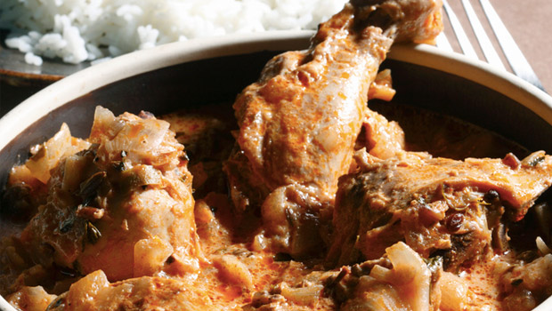 एक कढ़ाही में आधा कप तेल डालकर गरम करें. इसमें चिकन के साथ ही बड़ी इलाइची, दालचीनी स्टिक डालें और कुछ देर भूनें. इसमें अदरक लहसुन का पेस्ट डालें और कुछ सेकेंड भूनें. थोड़ी देर बाद कटी हुई प्याज डालें और इसे भी चिकन के साथ फ्राई करें. नमक और कालीमिर्च डाल दें और चिकन को चलाते रहें. ढककर कुछ देर पकाएं. अब चिकन में दही डालकर मिलाते हुए तेल आंच पर पकाएं. दही के पूरी तरह पकने के बाद इसमें क्रीम डालें और मिक्स करते हुए पकाएं. हरी मिर्च और जूलियन अदरक डालकर मिलाएं कुछ देर पकाएं के बाद हांडी निकालकर सर्व करें.