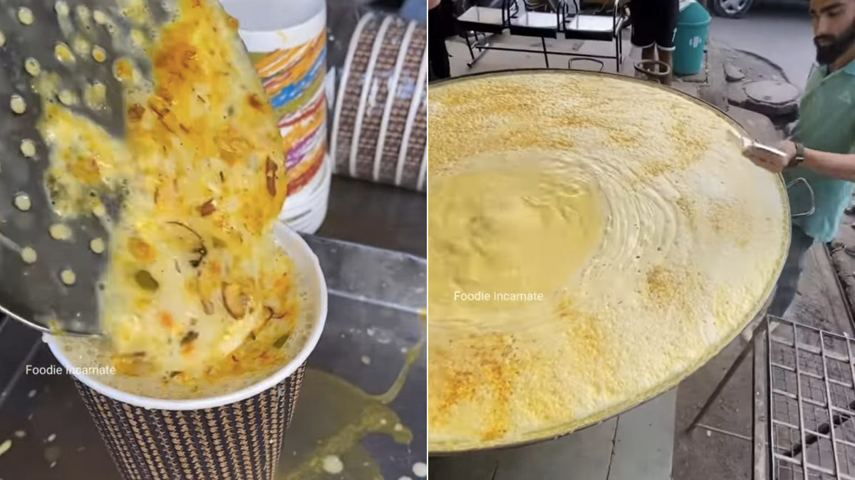 India's Biggest Kadhai Milk: दूध की पतेली तो आपने सुनी होगी, लेकिन क्या कभी दूध की कड़ाही सुनी है. नहीं ना तो हम बता रहे हैं. हाल ही में सोशल मीडिया पर दूध की कड़ाही का एक वीडियो तेजी से वायरल हो रहा है. जिसे भारत की दूध की सबसे बड़ी कड़ाही का वीडियो बताया जा रहा है. यह वीडियो इंदौर से आया है जिसे ब्लैगर ने अपने इंस्टाग्राम अकाउंट पर पोस्ट किया है. इस कड़ाही में 151 लीटर दूध को पकाया जा रहा है. इंस्टाग्राम पर हर कोई दूध की कड़ाही का यह वीडियो देखकर हैरान है. लोग कमेंट कर रहे हैं, दूध वो भी केसर मार के. खास तरीके से पकाए जाने वाले दूध के एक गिलास की कीमत 65 रूपये है.