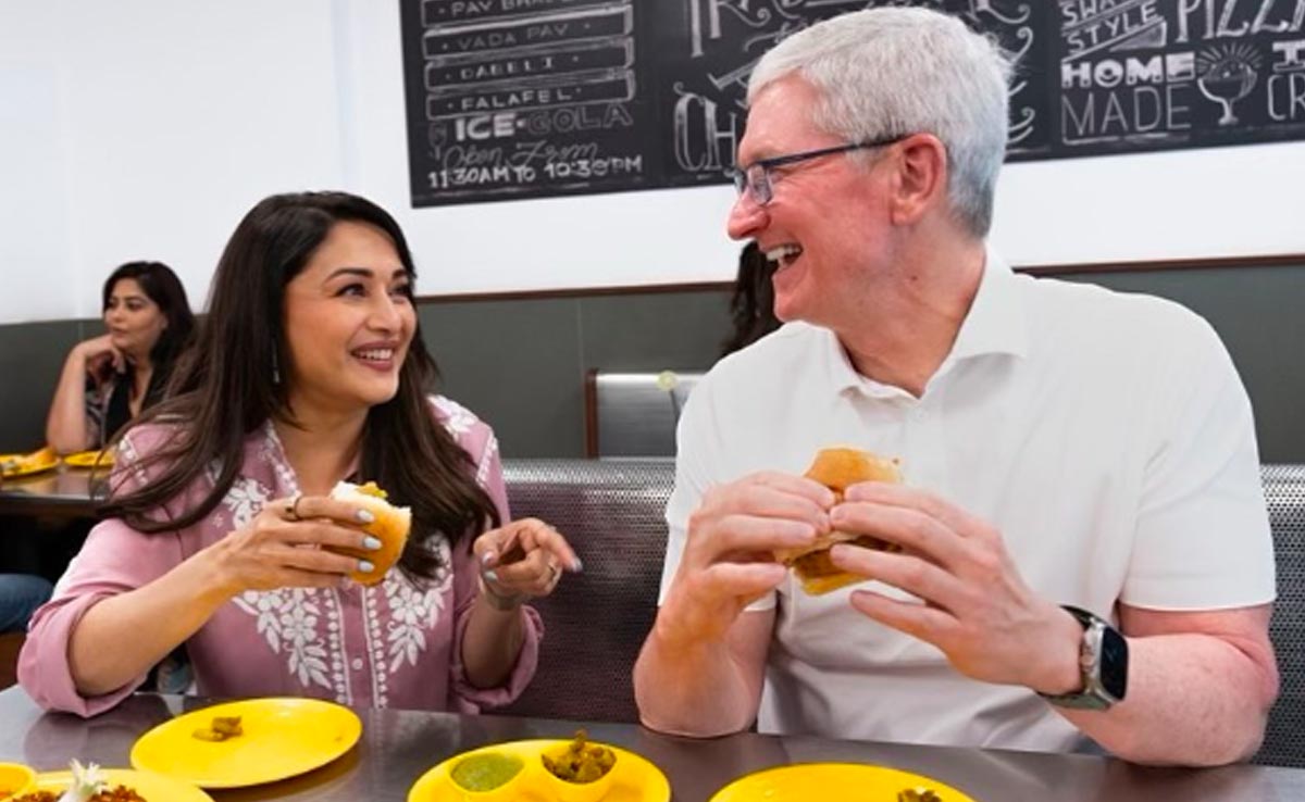 Madhuri Dixit with Tim Cook: मुंबई की सुबह वड़ा पाव से होती है. यह मुंबई का बेहद फेमस स्ट्रीट फूड है. नेता-राजनेता ही नहीं बड़े-बड़े सितारे भी वड़ा पाव के दीवाने हैं. सोमवार को एप्पल के सीईओ टीम कुक मुंबई पहुंचे. यहां उन्होंने बॉलीवुड एक्ट्रेस माधुरी दीक्षित से मुलाकात की. एक्ट्रेस ने इस पल की तस्वीरें अपने सोशल मीडिया अकाउंट से शेयर की है. बता दें कि टीट कुक मुंबई में देश का पहला एप्पल स्टोर लॉन्च करने वाले हैं और इसी सिलसिले में भारत पहुंचे हैं.