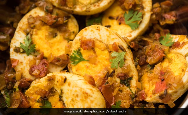 - अब इसमें उबले हुए अंडों को बीच से काटर डालें और मसालों में अच्छे से मिक्स कर दें.