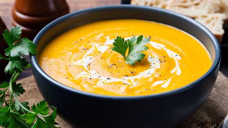 Roasted Pumpkin Soup: सर्दी का मौसम और कम्फर्टिंग सूप एक दूसरे के पर्याय हैं. आखिरकार, अगर आप फ्लेवरफुल सूप नहीं ले रहे हैं तो क्या आप ठंड के मौसम को इंजॉय कर रहे हैं? जवाब बड़ा नहीं है. क्या आप सहमत नहीं हैं? विंटर सूप की बात करें तो क्या आपने पहले कभी कद्दू का सूप ट्राई किया है? ठीक है, अगर आप इस सब्जी पर अपनी नाक मुंह बनाते हैं, तो हो सकता है कि इसे रेगुलर करी के रूप में खाना आपके लिए कारगर न हो. इसके बजाय एक पौष्टिक कद्दू का सूप ट्राई करें जो फ्लेवर और टेक्सचर रिच हो और आपको इस सब्जी से प्यार हो जाए. रेसिपी के बारे में चिंता मत करो. शेफ गुंटास सेठी ने इसे शेयर किया है. आगे बढ़ने से पहले, आइए जल्दी से कद्दू के स्वास्थ्य लाभों पर एक नजर डालते हैं. यह कई विटामिन और मिनरल से लोडेड है. वजन घटाने की जर्नी में मदद करने के अलावा, कद्दू आपकी आंखों की रोशनी के लिए भी बहुत अच्छा है. एंटी-ऑक्सीडेंट से भरपूर ये इम्यूनिटी को बूस्ट करने में भी मददगार है.