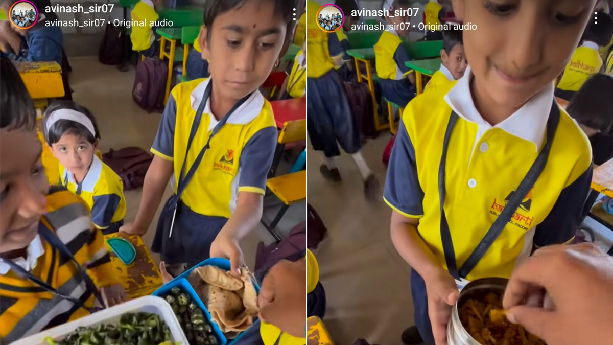 स्कूल में बच्चे, हममें से कई लोग लंच ब्रेक का इंतजार करते होंगे. हम अपने फ्रेंड्स के साथ समय बिताते, गेम खेलते और अपने टिफिन से खाना शेयर करते. कई लोगों के पास अपने स्कूल के टिफ़िन से जुड़ी सुखद यादें हैं, और हाल ही में वायरल हुए एक वीडियो ने उन्हें वापस लाने की कोशिश की है. इंस्टाग्राम रील में, हम एक स्कूल में युवा छात्रों को पूरे दिल से अपने शिक्षक के साथ अपना पैक किया हुआ फूड शेयर करते हुए देखते हैं. वीडियो को 10 मिलियन व्यूज मिल चुके हैं और इसने पूरे इंस्टाग्राम पर दिल जीत लिया है.