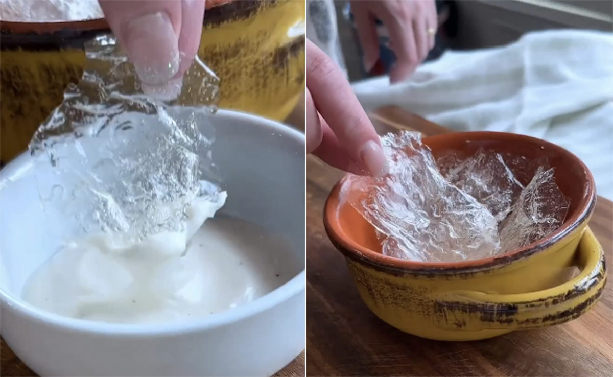 वीडियो में, इनविजिबल आलू बनाने का प्रोसेस स्टेप-बाय-स्टेप सामने आता है. यह सब उस महिला द्वारा कुछ आलुओं में हल्का कट करने से शुरू होता है. इसके बाद, वह उन्हें पकाने के लिए ओवन में डालने से पहले उदारतापूर्वक उनके ऊपर तेल और नमक डालती है. जब आलू पूरी तरह से पक जाएं तो वह एक बर्तन लेती हैं और उसमें आलू डाल देती हैं. फिर, वह बर्तन में पानी डालती है. बाद में, वह सावधानी से पानी को अलग करती है और उसे ठंडा होने के लिए रेफ्रिजरेटर में रख देती है. एक बार जब आलू-बेस्ड पानी ठंडे तापमान पर पहुंच जाता है, तो वह मिश्रण में आलू का स्टार्च डालती है और इसे उबालना शुरू कर देती है. जैसे ही मिश्रण में उबाल आता है, यह एक चिपचिपी कंसिस्टेंसी में बदल जाता है. फिर महिला इस चिपचिपे मिश्रण को बेकिंग पेपर की एक शीट पर फैलाती है, और इसे आलू का शेप देती है. डिहाइड्रेशन के एक दौर के बाद, वह उन्हें पूरी तरह बेक करने के लिए आगे बढ़ती है. और अंततः, इनविजिवल डिलाइट अब टेस्ट लेने के लिए तैयार है.