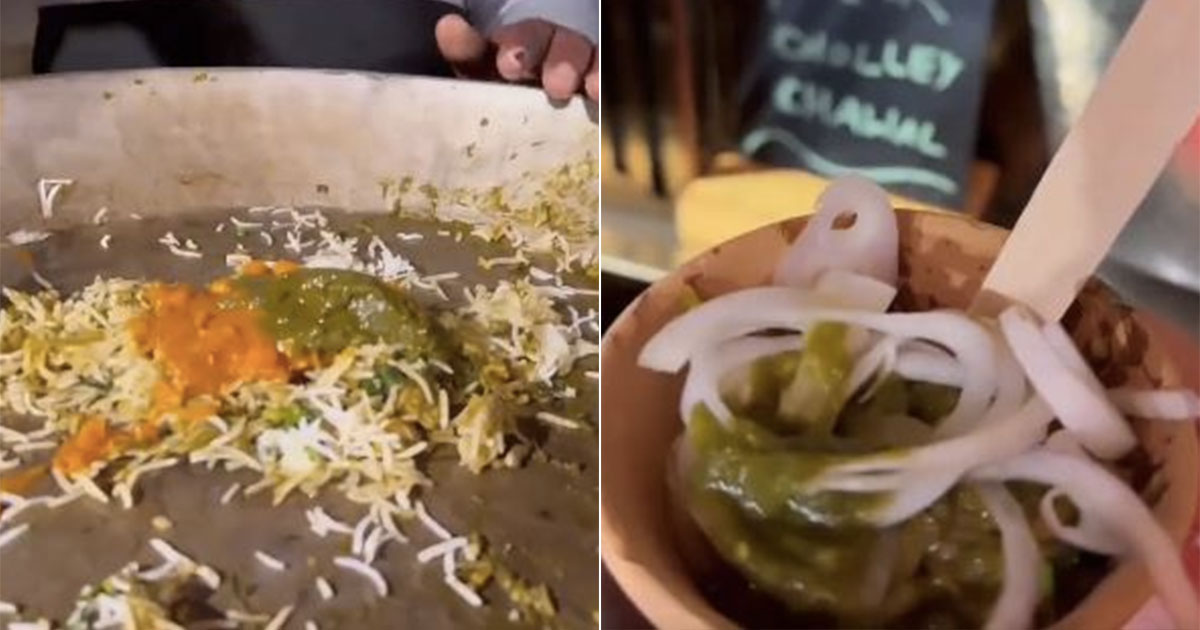 वायरल वीडियो में हम देख सकते हैं कि पालक छोले चावल नामक एक डिश बनकर तैयार हो रही है. इस अनोखी डिश को एक लाइव काउंटर पर तैयार किया जा रहा था और इसे बनाने में बहुत सारी दिलचस्प सामग्रियों का इस्तेमाल किया गया था. इसे बनाने में सबसे पहले चावल के एक बड़े स्कूप को थोड़े से घी के साथ तवे पर गर्म किया गया, फिर छोले और पालक की सब्जी दोनों को चावल में एक चुटकी चाट मसाला के साथ डाल कर मिक्स कर दिया गया. इसके ऊपर कुछ प्याज के छल्ले सजाए गए थे और इस डिश को मिट्टी के कुल्हड़ पर परोसा गया था.