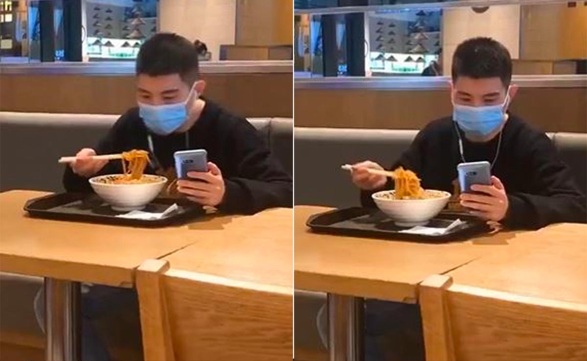 वीडियो मूल रूप से '100 रीजन टू स्माइल' अकाउंट से शेयर किया गया था और बाद में @NoContextHumans ने इसे दोबारा पोस्ट किया था. 29 मई को शेयर किए गए इस वीडियो को 9.5 मिलियन से अधिक व्यूज और 30.8k से अधिक लाइक्स मिल चुके हैं. 6 सेकेंड के इस छोटे से वीडियो में एक शख्स टेबल पर नूडल्स से भरा कटोरा लिए बैठा है. वह अपने फोन पर ईयरफोन लगाकर कुछ देख रहा था और चॉपस्टिक से नूडल्स खा रहा था. हालाँकि, उन्हें इस बात का एहसास नहीं था कि उसने मास्क लगा रखा है! नतीजा ये हुआ कि नूडल्स मास्क पर लग गए और वो गंदा हो गया. वह आदमी तब होश में आ गया और अपने मास्क से नूडल् को हटाने लगा, इस उम्मीद में कि उस पर किसी ने ध्यान नहीं दिया होगा.