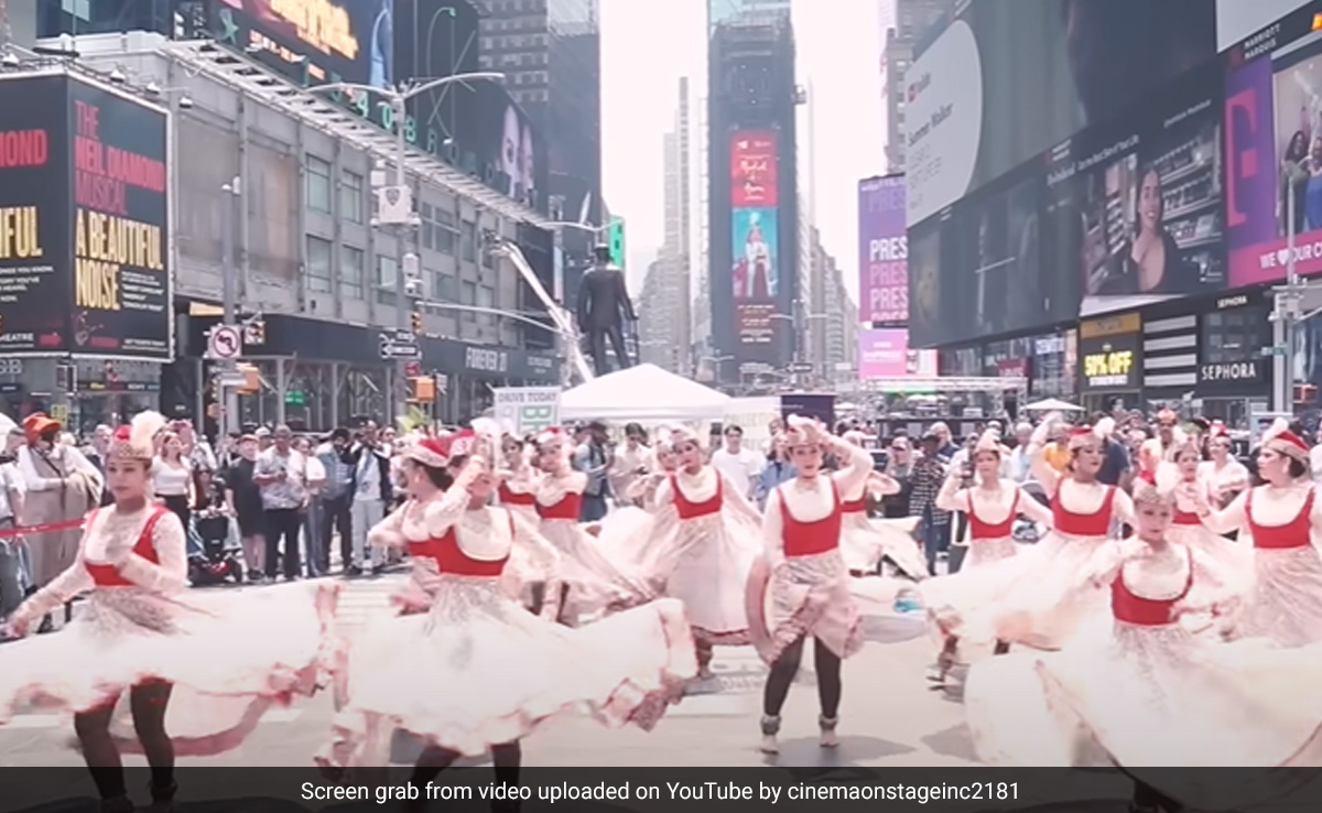 इंडियाज ग्रेटेस्ट स्टेज म्यूजिकल शो मुगल-ए-आजम की टीम ने हाल ही में न्यूयॉर्क के टाइम्स स्क्वायर पर परफॉर्म किया. सोशल मीडिया पर इस परफॉर्मेंस के कई वीडियो शेयर किए गए हैं. जिसमें देखा जा सकता है कि अमेरिका की सबसे फेमस जगह यानि टाइम्स स्क्वायर पर भारतीय रंग में रंगे कलाकार बेहद शानदार प्रस्तुति दे रहे हैं. टीम के सारे कलाकारों ने मुगल-ए-आजम के फेमस गाने 'जब प्यार किया तो डरना क्या' गाने पर इतनी कमाल की परफॉर्मेंस दी कि वहां खड़े लोग भी झूमते नजर आए.