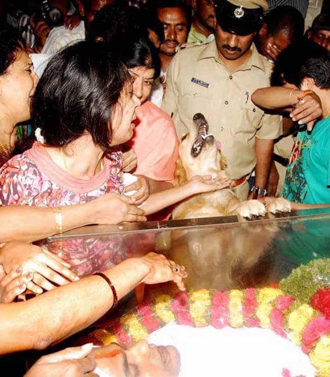 बेंगलुरु : आईएएस अधिकारी डी.के. रवि का शव जैसे ही उनके ससुराल पहुंचा, घर का पालतू कुत्ता ब्रुनो परिवार वालों के साथ रोता नज़र आया। हालांकि रवि हफ्ते में सिर्फ दो दिन ही अपनी ससुराल जाते थे लेकिन जानवरों से उनका प्यार इस कुत्ते को उनके काफी क़रीब लाया था। घर पर मौजूद लोगों के मुताबिक ब्रुनो ठीक से खा भी नहीं रहा।