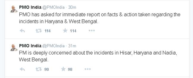 पीएमओ ने इन घटनाओं की जानकारी और दोनों मामलों में की गई कार्रवाई पर रिपोर्ट मांगी है। पीएमओ ने ट्वीट कर यह जानकारी दी है।