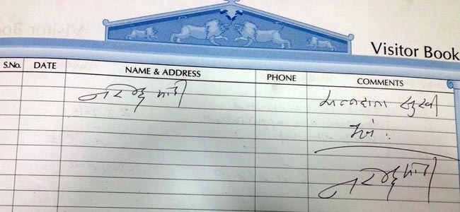 प्रधानमंत्री ने कैंटीन की विजीटर बुक में लिखा अन्न्दाता सुखी भव:। प्रधानमंत्री ने टेबल पर बैठे छेदी पासवान से बिहार पर चर्चा की। उन्होंने उसी टेबल पर बैठकर बीजेपी के राज्यसभा सांसद से गुजराती में बातें कीं।