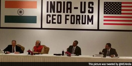 दिल्ली के होटल ताज पैलेस में प्रधानमंत्री नरेंद्र मोदी और अमेरिकी राष्ट्रपति बराक ओबामा ने दोनों देशों के प्रमुख सीईओ के एक सम्मेलन को संबोधित किया।