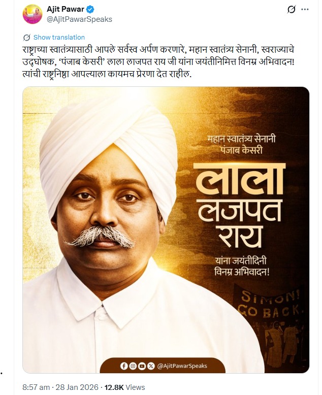 महाराष्ट्र के उप मुख्यमंत्री अजित पवार ने विमान हादसे में मौत से ठीक पहले सोशल मीडिया पोस्ट किया था. प्लेन एक्सीडेंट के ठीक पहले X पर स्वतंत्रता संग्राम के नायकों को श्रद्धांजलि दी थी.