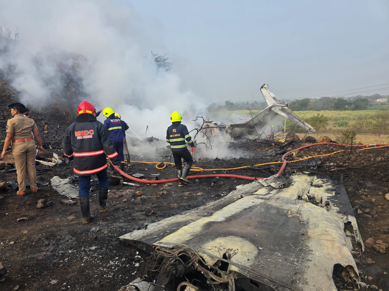 | Crash landing in Baramati | Baramati, Maharashtra: An eyewitness at the spot says, "I saw it with my eyes. This is really painful. When the aircraft descended, it seemed it would crash, and it did crash. It then exploded. There was a massive explosion. After that, we… pic.twitter.com/fBQplnxHON