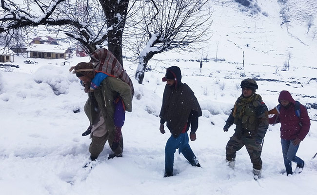 जाबरी गांव एक खड़ी ढलान पर स्थित है. वहां भारी बर्फबारी के कारण आवागमन बेहद चुनौतीपूर्ण है. चिनार कॉर्प्स के जवान घुटने तक जमा बर्फ में चलकर बीमार महिला के घर पहुंचे. उन्होंने बुजुर्ग महिला को अपनी पीठ पर लाद लिया ताकि पहाड़ी की खड़ी ढलान और भारी बर्फ गिरने के कारण रोगी को चोट कम से कम लगे.