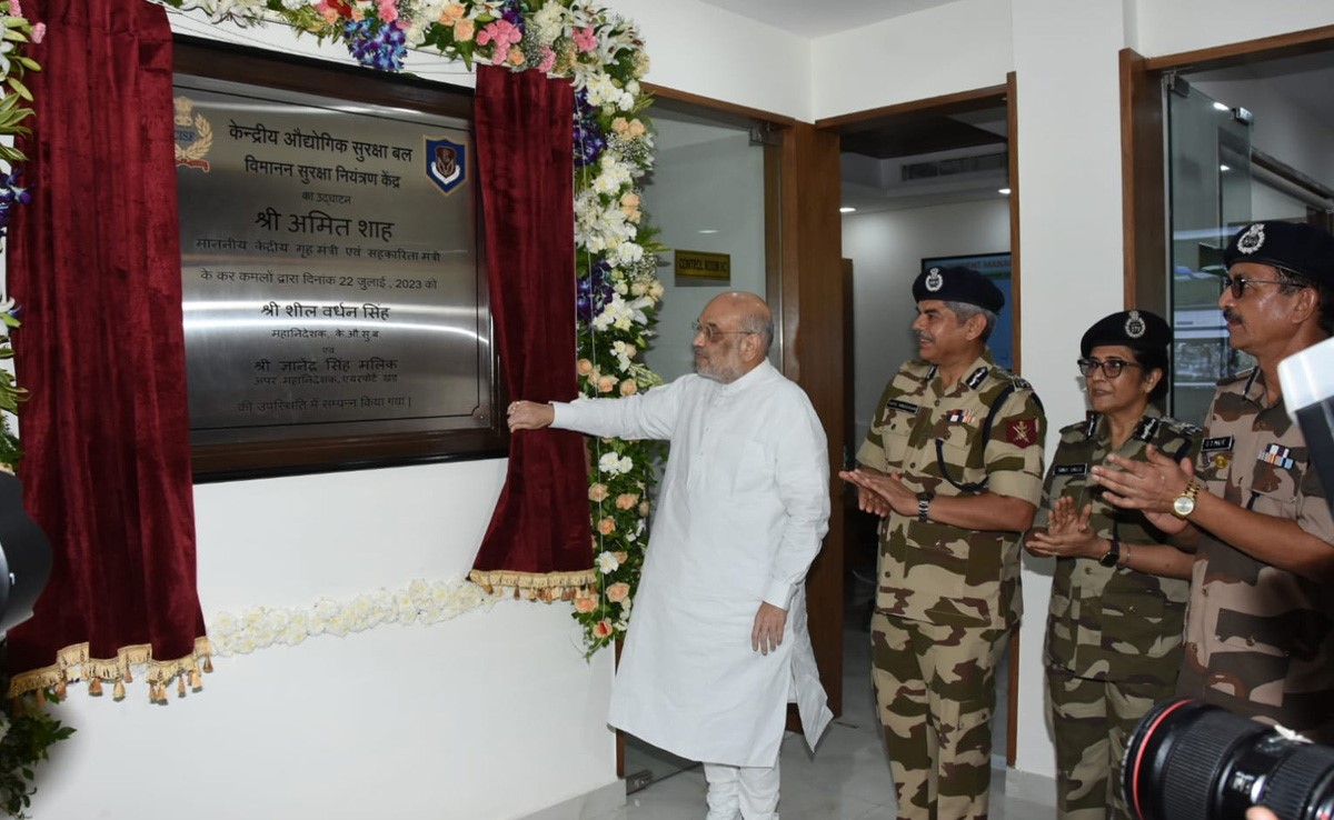 केंद्रीय गृह एवं सहकारिता मंत्री अमित शाह ने शनिवार को केंद्रीय औद्योगिक सुरक्षा बल (CISF) के परिसर महिपालपुर में बल के नवस्थापित विमानन सुरक्षा नियंत्रण केंद्र (ASCC) का उद्घाटन किया. इस अवसर पर सीआईएसएफ के महानिदेशक शील वर्धन सिंह के अलावा आसूचना ब्यूरो के निदेशक तपन कुमार डेका और नागर विमानन सुरक्षा ब्यूरो के महानिदेशक जुल्फिकार हसन के अलावा कई गणमान्य व्यक्ति उपस्थित थे.
