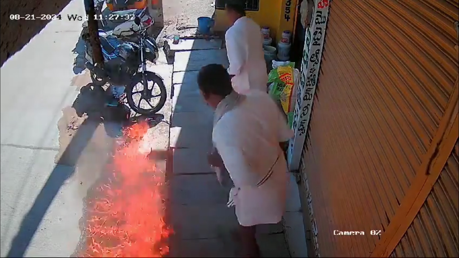 सामने आए सीसीटीवी फुटेज में देखा जा सकता है कि दो लोग एक दुकान के पास बातचीत करते दिख रहे हैं. उनके ठीक सामने पेट्रोल बह रहा था. उनमें से एक आदमी बीड़ी जलाता है और जलती हुई माचिस की तीली को फेंक देता है. माचिस पेट्रोल पर जाकर गिरती है और तुरंत आग के गोले में बदल जाती है. आग की ऊंची लपटों के बीच, धूम्रपान करने वाला और क्लिप में दिखाई दे रहे अन्य लोग जान बचाने के लिए भागते हुए नजर आ रहे हैं. जिन लोगों के वाहन मौके पर खड़े थे, वे आग की लपटों में बदल गए. आग की लपटें पेंट्रोल पंप तक पहुंच जाती. लेकिन लोगों की तत्परता की वजह से उसे रोक लिया गया. आग से कई दुकानें और वाहन क्षतिग्रस्त हो गए.