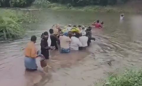 चित्तूर के कस्तूरी नायडू कांड्रिगा निवासी शंकर (53) की मंगलवार को मौत हो गई थी. मौसम विभाग ने राज्य में बहुत भारी बारिश का अनुमान जताया था. ऐसे में अंतिम संस्कार करने के लिए परिवार को श्मशान तक पहुंचने के लिए कमर तक पानी से होकर गुजरना पड़ा.