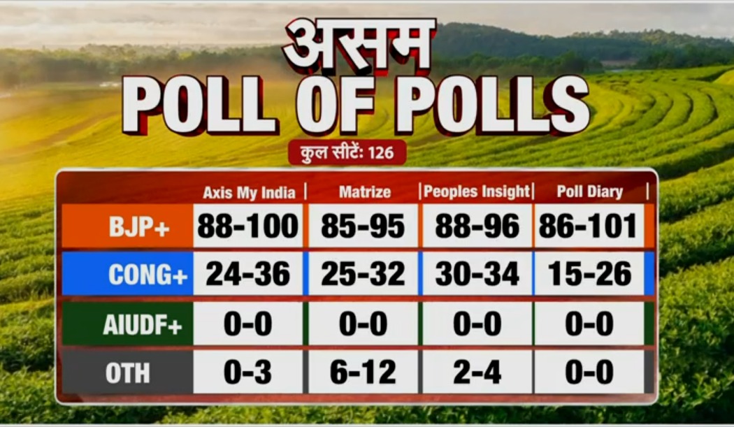 Assam Poll of Polls LIVE: असम में फिर से NDA की सरकार, देखिए पोल और पोल्स