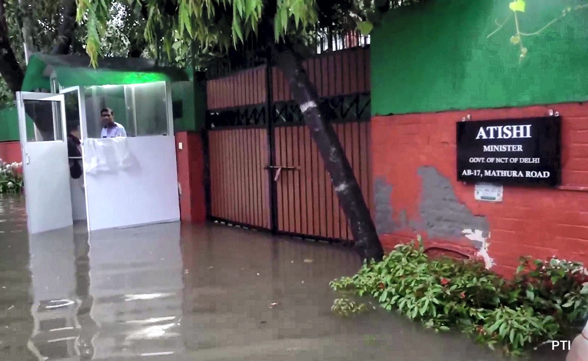 दिल्ली में लगातार हो रही बारिश से लोग परेशान हैं. दो दिन की भारी बारिश के बाद दिल्ली की मंत्री आतिशी के सरकारी आवास के सामने की सड़क पर पानी भर गया. वीडियो में देखा गया है कि पानी मंत्री के सरकारी आवास के गेट से अंदर भी प्रवेश कर गया है.गौरतलब है कि रविवार को लोक निर्माण विभाग (पीडब्ल्यूडी) मंत्री आतिशी इंजीनियरों से मिलने और बाढ़ प्रभावित क्षेत्रों का निरीक्षण करने के लिए लगातार शहर का दौरा कर रही थीं. इधर उनके आवास के बाहर भी जलजमाव की समस्या को देखा गया.