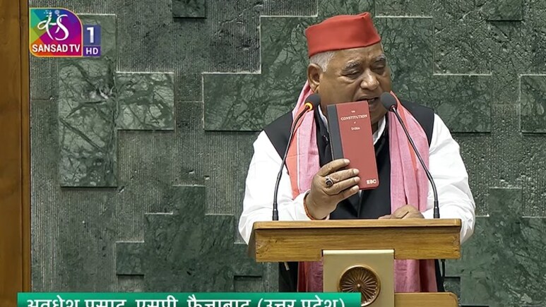 सांसद पद की शपथ लेने के बाद अवधेश प्रसाद ने हाथ में संविधान भी उठाया और संविधान जिंदाबाद के नारे लगाए. दिवंगत मुलायम सिंह यादव को याद करते हुए अवधेश प्रसाद ने कहा, "नेताजी अमर रहें."