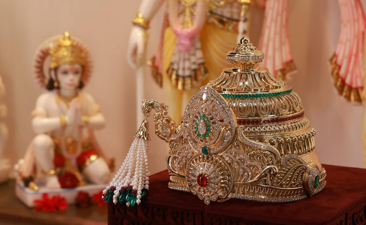 सूरत स्थित उद्योगपति और ग्रीनलैब डायमंड्स के प्रमुख मुकेश पटेल ने भगवान राम की मूर्ति के लिए 11 करोड़ रुपये का स्वर्ण मुकुट उपहार में दिया. यह कीमती रत्नों से जड़ा हुआ है. इसका वजन 6 किलोग्राम है.