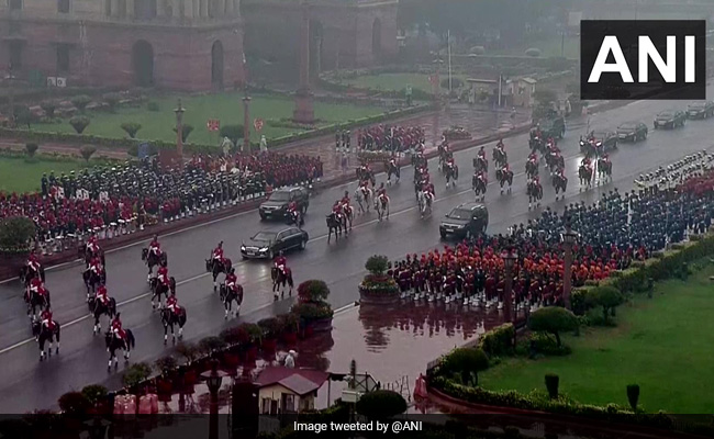 दिल्ली के ऐतिहासिक विजय चौक पर आयोजित बीटिंग रिट्रीट के जज्बे को बारिश भी डिगा नहीं सका. रविवार को सशस्त्र बलों के बैंड ने भारतीय शास्त्रीय धुनों को बजाकर समा बांध दिया. इसी के साथ गणतंत्र दिवस समारोह का औपचारिक समापन हो गया. समारोह राष्ट्रपति द्रौपदी मुर्मू के आगमन से शुरू हुआ. उनका स्वागत प्रधानमंत्री नरेंद्र मोदी और रक्षामंत्री राजनाथ सिंह ने किया.