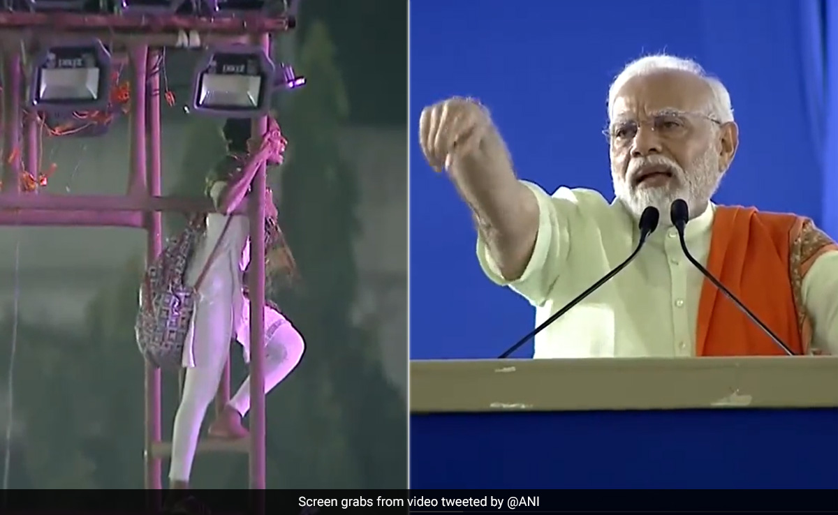 हैदराबाद: PM नरेंद्र मोदी ने शनिवार को यहां एक रैली को संबोधित किया था, जिसके बाद उन्हें एक पल के लिए अपना भाषण बीच में रोकना पड़ा, जब उन्होंने एक युवती को परेड ग्राउंड में एक इमारत पर चढ़ते हुए देखा, जिस पर लाईट लगी हुई थी. पीएम मोदी अनुसूचित जाति के सबसे बड़े घटकों में से एक, मैडिगा के सामुदायिक संगठन, मैडिगा रिजर्वेशन पोराटा समिति (एमआरपीएस) द्वारा आयोजित एक बैठक को संबोधित करने के लिए गए थे.