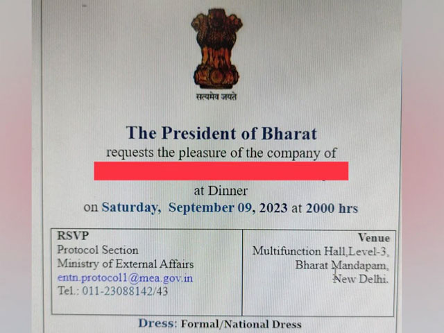 राष्ट्रपति मुर्मू की ओर से भेजे जा रहे निमंत्रण पत्र से अटकलों को हवामोहन भागवत के बयान के बाद चल रही अटकलों को हवा मिली राष्ट्रपति द्रौपदी मुर्मू की ओर से भेजे जा रहे एक निमंत्रण पत्र से. 9 सितंबर को जी20 बैठक में आनेवाले राष्ट्राध्यक्षों के सम्मान में आयोजित रात्रिभोज के लिए राष्ट्रपति की ओर से जो निमंत्रण पत्र भेजा गया है उसमें अंग्रेज़ी में President of Bharat लिखा हुआ है. आमतौर पर ऐसे निमंत्रण पत्रों में अंग्रेजी में President of India लिखा जाता रहा है, जबकि हिंदी में भारत के राष्ट्रपति लिखा होता है.