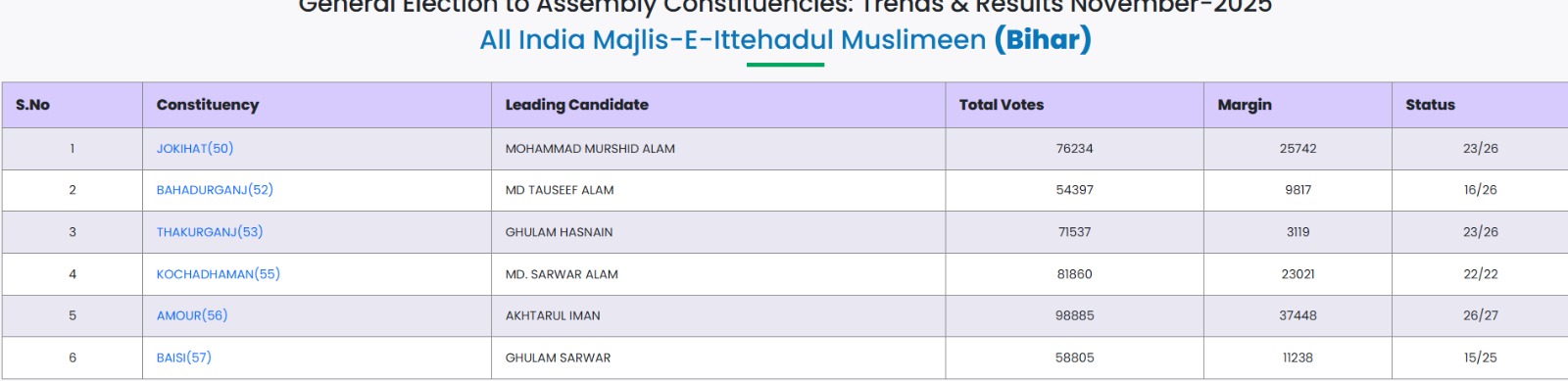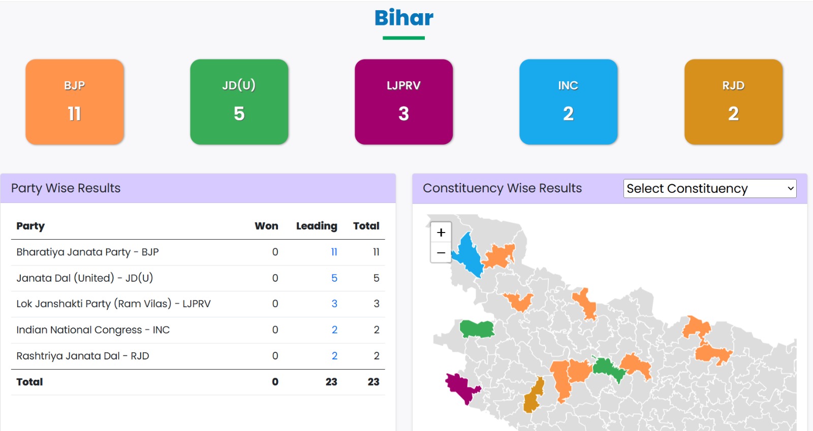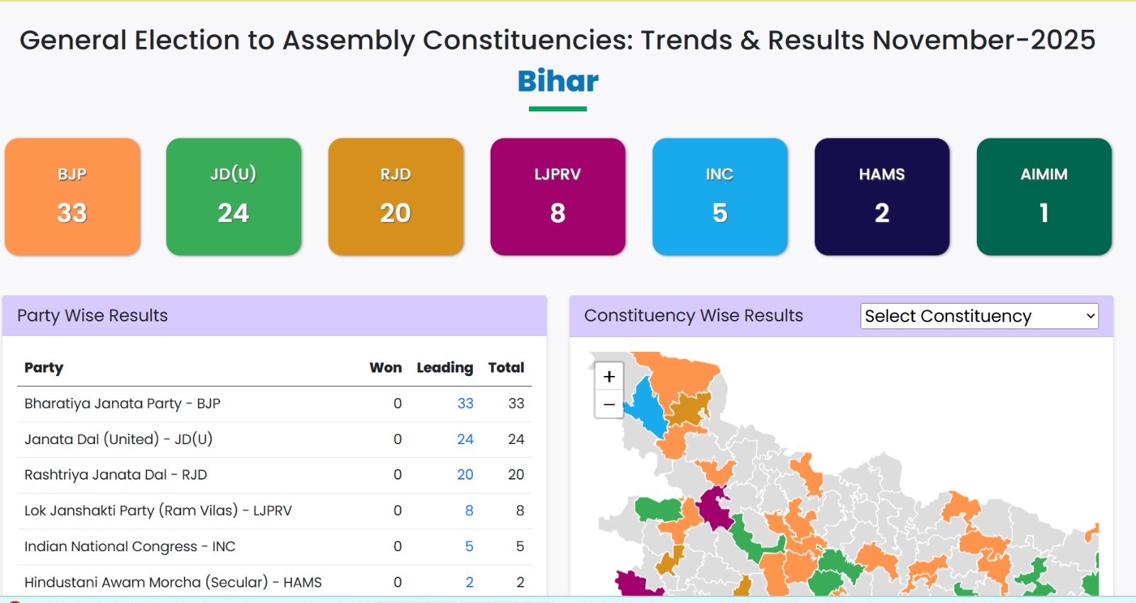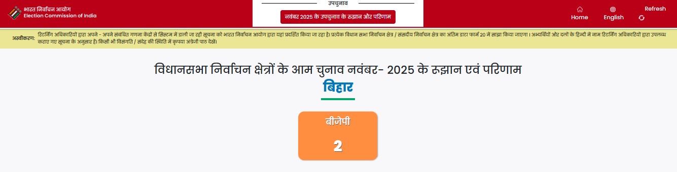 Bihar Results Live: चुनाव आयोग की साइट का डेटा