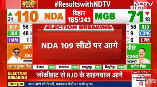 शुरुआती रुझानों में NDA को 109 सीटों पर बंपर बढ़त मिलती दिख रही है.