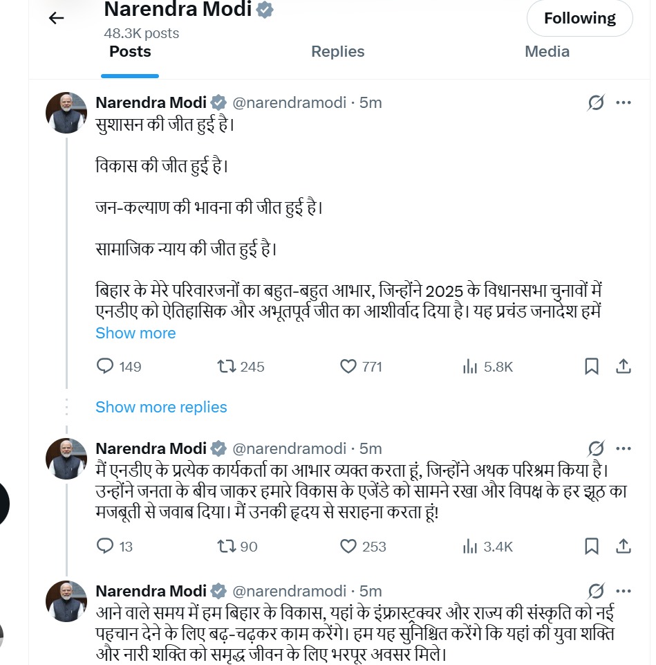 प्रशांत किशोर की जन सुराज और मुकेश सहनी की VIP खाता भी नहीं खोल सकी है. बिहार विधानसभा चुनाव के नतीजे से जुड़े पल-पल के अपडेट के लिए इस लाइव ब्लॉग के गुजरे. यहां आपको हर एक अपडेट मिलेगा.