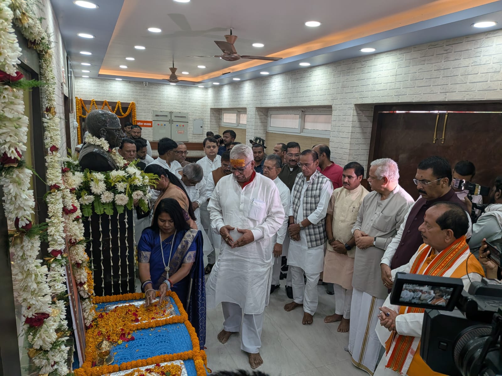 #WATCH | Bihar: BJP's Central Observer for Bihar and Union Minister Shivraj Singh Chouhan, BJP National President Nitin Nabin and BJP National General Secretary Vinod Tawde arrive at Patna.