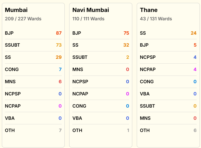 मुंबई, नवी मुंबई और ठाणे के शुरुआती रुझानों को यहां देखें-