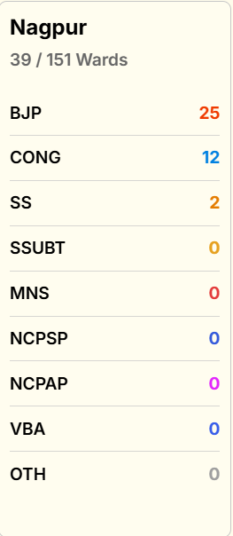 नागपुर के शुरुआती रुझानों में भाजपा और शिवसेना 27 सीटों पर आगे हैं. जबकि कांग्रेस 12 सीटों पर है.