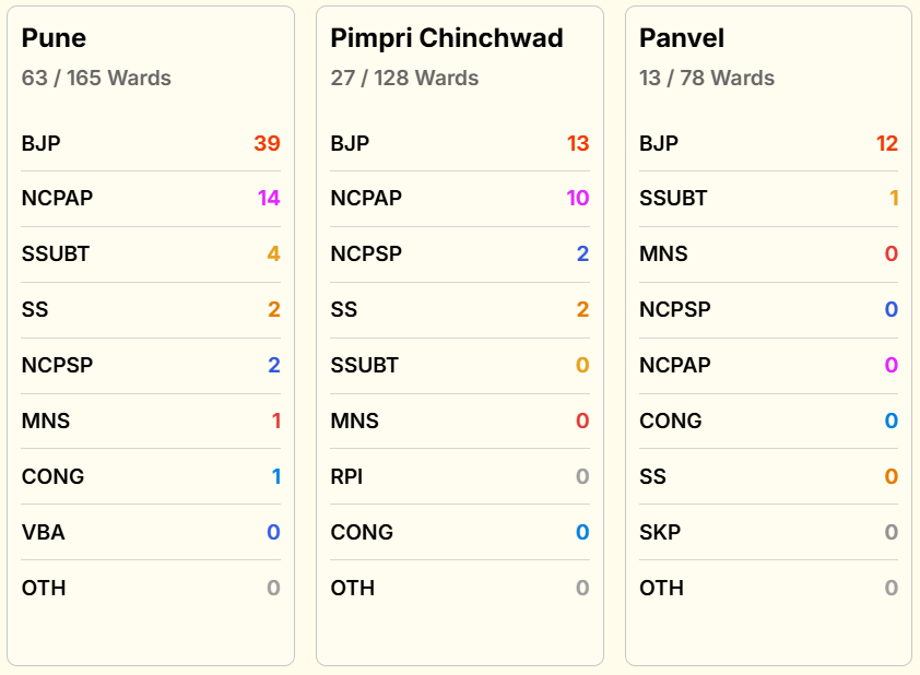 जानें- पुणे, पिंपरी-चिंचवड़ और पनवेल में किसे बढ़त-