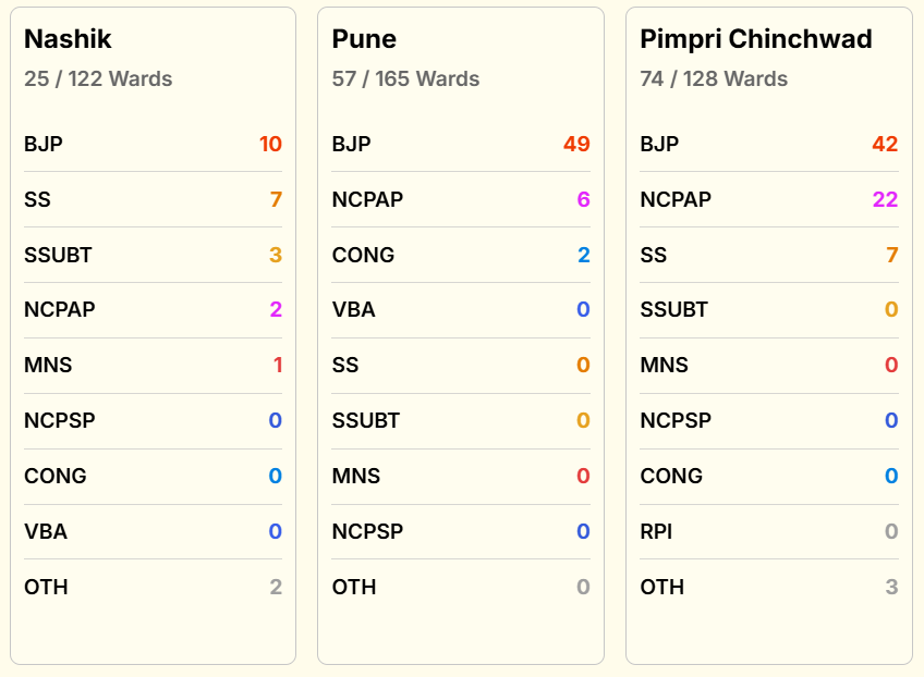 महाराष्ट्र निकाय चुनाव के सबसे ताजा रुझान