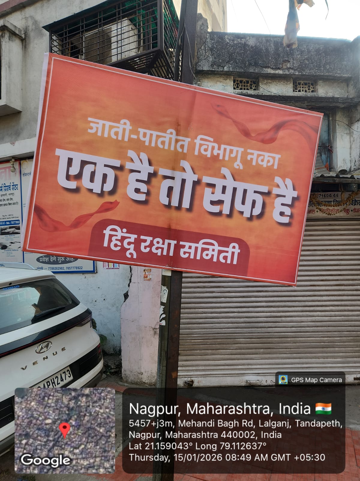 नागपुर के मेहंदीबाग इलाके में ‘एक हैं तो सेफ हैं’ के बैनर लगे हैं. हिंदू रक्षा समिति की ओर से लगाए गए हैं ये ‘एक हैं तो सेफ हैं’ के बैनर. पूरे परिसर में ये बैनर्स जगह-जगह दिखाई दे रहे हैं. एक हैं तो सेफ हैं, का नारा पिछले वर्ष महाराष्ट्र विधानसभा चुनावों में खासा चर्चित रहा था.
