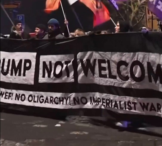 दावोस में डोनाल्ड ट्रंप के खिलाफ विरोध प्रदर्शन