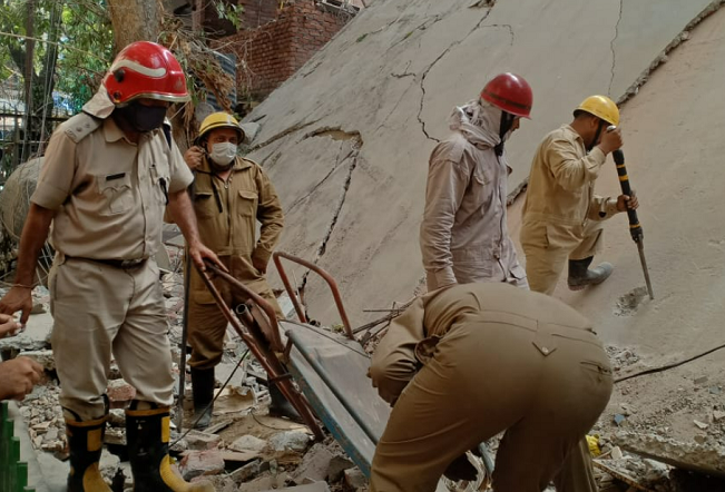 दक्षिणी दिल्ली के सत्य निकेतन में उस वक्त बड़ा हादसा हो गया जब एक इमारत भरभराकर गिर गई. इसमें कई मजदूर दब गए, जिन्हें निकालने के लिए घंटों ऑपरेशन चला. लंबी कवायद के बाद सभी 6 मजदूरों को निकाल लिया गया, जबकि दो मजदूरों की मौत हो गई है. दरअसल, सुबह के वक्त सत्य निकेतन इलाके में बिल्डिंग गिरने की सूचना पुलिस को दी गई थी. मौके पर पहुंची पुलिस ने फायर ब्रिगेड और एनडीआरएफ टीम को मौके पर बुलाया. जिसके बाद घंटों चले रेस्क्यू ऑपरेशन के बाद पांचों मजदूरों को बाहर निकाल लिया गया. जानकारी के मुताबिक इस तीन मंजिला इमारत में रेनोवेशन का काम चल रहा था. जिस समय इमारत गिरी उस समय वहां 6 मजदूर काम कर रहे थे.