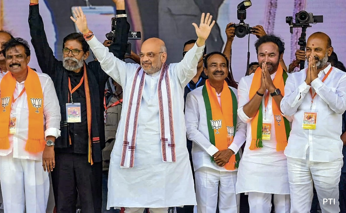 शाह ने कहा कि तेलंगाना को ‘डबल इंजन' सरकार की जरूरत है यानी केंद्र के साथ-साथ राज्य में भी मोदी सरकार.