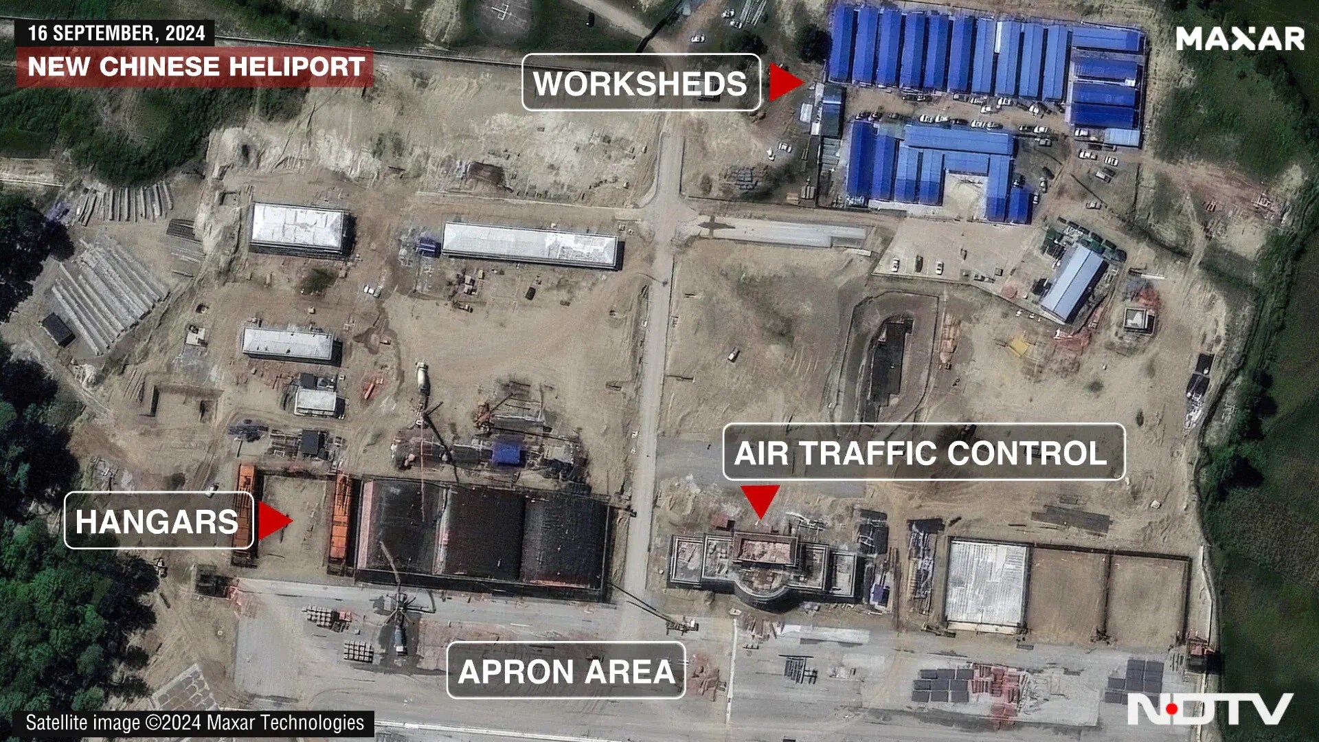 ईओएस डाटा एनालिटिक्स पर मौजूद सैटेलाइट से ली गई एक तस्वीर से पता चलता है कि जहां हेलीपोर्ट बनाया जा रहा है, वहां एक दिसंबर 2023 तक कोई निर्माण नहीं था.वहीं 31 दिसंबर 2023 की एक सैटेलाइट तस्वीर से पता चलता है कि जमीन को निर्माण के लिए साफ किया जा रहा है.स्पेश टेक्नोलॉजी से जमीन पर नजर रखने वाली संस्था मैक्सर की ओर से 16 सितंबर को ली गई हाई रिजोल्यूशन तस्वीर से पता चलता है कि वहां पर बहुत अधिक निर्माण कार्य किया जा चुका है.
