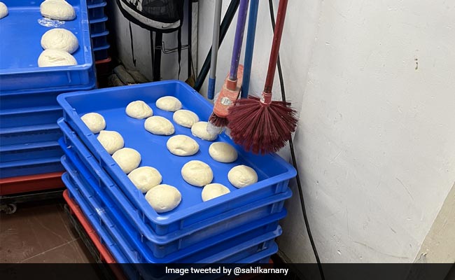 साहिल कर्णनी नाम के ट्विटर यूजर ने ट्विटर पर दो तस्वीरें अपलोड की है जिसमें किचन में पिज्जा के आटे की ट्रे के ठीक ऊपर सफाई करने वाले पोछे और ब्रश दिखाई दे रहे हैं. साथ ही, कथित तौर पर कर्मचारियों के कपड़े, ट्रे के ऊपर की दीवार पर लटके हुए दिखाई दे रहे हैं.