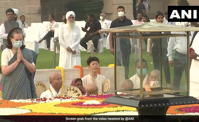 कांग्रेस की अंतरिम अध्यक्ष सोनिया गांधी (Sonia Gandhi) और कांग्रेस के वरिष्ठ नेता मल्लिकार्जुन खड़गे (Mallikarjun Kharge) ने गांधी जयंती पर राजघाट पर महात्मा गांधी (Mahatma Gandhi) को श्रद्धांजलि दी.